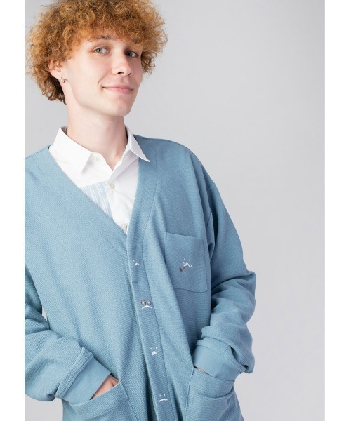 先のとんがったヒゲ、ちょびヒゲ、くるくる巻きヒゲなどなど、根強い人気のあるヒゲをモチーフにしたデザイン。表面に凹凸感のあるサカリバ生地を使用したカーディガン。フロント部分は比翼仕立てで、すっきりとした印象に仕上がっています。シャツやTシャツと合わせて、季節の変わり目にぴったりのアイテムです。[刺繍加工]※商品画像と実物では多少色味に違いがある場合がございますので予めご了承下さい。※発売日や販売状況は店舗によって異なります。※男女兼用