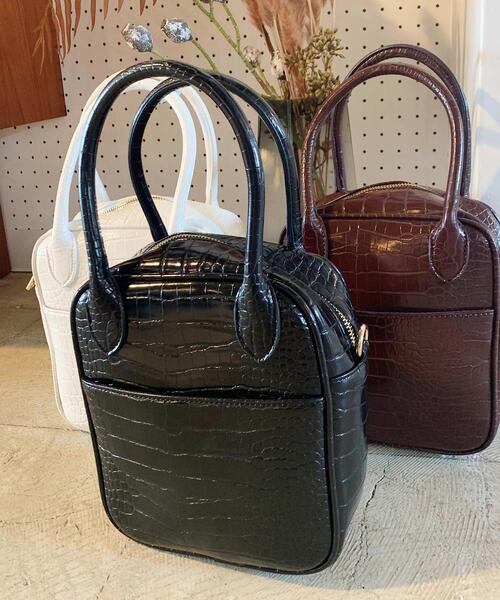 ★WEB限定アイテム★ 小振りながらもコーディネイトのアクセントにぴったりな型押しデザインのバッグ。付属のショルダーは取り外せるのでハンドバッグとしてもショルダーバッグとしても使えます。マチがしっかりあるので見た目以上に収納力があるのも◎。開閉部はジップなので中身が見える心配もありません。表にはICカードなどを入れるのに便利なオープンポケット付き。・A4サイズ不可・裏地あり・内ポケットあり・ショルダー調節可・ショルダー取り外し可・重量:約367g