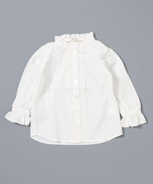 スタンドフリルが可愛らしいブラウスです。ホワイトはオケージョン用にも使用できます。前開き部分にレースを施し、袖口はバルーンシルエットでより可愛らしくしております。袖口がゴム仕様になっているので袖まくりや着脱が楽ちんです。トレーナーの下に着用してフリル衿をちら見せさせるスタイリングもおススメです。★ラゲッドワークスではサスティナブルな活動に取り組んでいますこの商品は、商品を作る際に使用する水の量を削減しています。