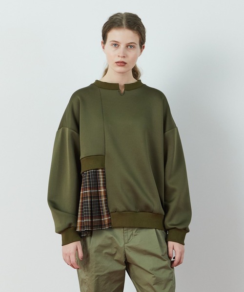 キレイな表面感と適度なハリコシが特徴の上品見えのするカットソー素材にオリジナルのチェック素材でつくったプリーツパーツを組み合わせたデザインカットソー。 ドロップショルダーにゆったりとした身頃、丸みをつけたゆるやかな袖がルーズ過ぎないスッキリとしたシルエットに仕上がっています。 アシンメトリーに付いたチェックのプリーツ生地は動きによって軽やかな表情をだし、クラシックな柄と相まって大人の雰囲気も演出しています。 衿にはキザミをいれてニュアンスをだし、アジュアル過ぎない衿もとにしています。 同じ柄のボトムスと合わせても可愛いコーディネートが楽しめます。 【ブランド情報】 FRAPBOIS/フラボア 2001年にブランドスタート。 「大人げない大人の服」をコンセプトに、大人が着るリラックスしたデイリーウェアを提案するコレクションブランド。 レディースとメンズのアイテムをご用意しています。 ---------------------------------------------------------------------- 【お気に入り登録】がおすすめです。 ■商品のお気に入り登録 再入荷、残り1点、セールなどの通知を受け取ることができます。 →商品ページ ♡ をクリック ■ショップのお気に入り登録 新商品や再入荷、セール、クーポン配布、ショップニュースなど、いち早くショップの情報を受け取ることができます。 →「♡お気に入りショップに追加」 をクリック ----------------------------------------------------------------------