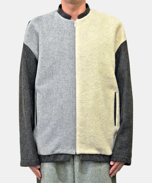 ohta 太田雅貴により2007年に創立され、同年、南仏イエールのヨーロッパ新人デザイナーコンテストであるイエール国際モードフォトフェスティバル(Festival International des Arts de la Mode)でファイナリストに残るなど、国際的にも活躍を見せている。 非常に着心地の良い素材感やシルエットでありながらエッジの効いたデザインが特徴で、シーズン毎のコンセプトも他のブランドとは違う非常にユニークな打ち出し方をしている。 ------------------------------------------------------ 4種のウール混素材を使用したZIPジャンパー。 縫い目の出ないオープンファスナーを使用することで、シルエットに丸みのある印象◎ 袖つけのパターンも特徴的で、素材の色も違うことで視覚的に面白いデザイン。 着用時、滑りを良くし着やすくするために袖には裏地を付けています。