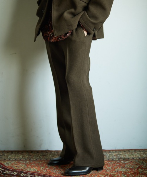TAUPE(トープ)2021AWコレクションから、ゆったり着て頂けるスポンディッシュ4Bジャケットの登場です。ボックスシルエットのテーラードジャケットです。【素材】イタリアBELLAND社のインポート素材。 独特の表面感が特徴のドピー組織でありながら、コシのあるダブルクロスに織られています。横糸にスポンジのような超甘燃りの合成繊維を打ち込むことで、 もちっとした風合いと表現し、 空気をより多く含む為、 保温性に優れた素材に仕上がっています。【デザイン】膝から裾に向かって広がるフレアシルエットのスラックス。ウエスト後ろ部分には平ゴムを入れることで着脱時のストレスを軽減しています。美脚効果のあるシルエットで、センタークリースをつけるようにプレスしているので、非常に上品な一着に仕上がっています。同素材のジャケットとコーディネートすればセットアップのスタイリングもお楽しみいただけます。【コーディネート】キレイめなフレアのシルエットが特徴的なパンツなので、Tシャツやシャツに合わせてシンプルなスタイルを楽しん頂くのがオススメです。また、今季は同素材で展開しております、4Bジャケットと組み合わせてキレイめなセットアップスタイルを楽しんで頂くのもオススメです。【ブランド】TAUPE(トープ)“大人に向けた、個性を発揮する為の日常着”大人=保守的という固定観念に捉われずに、自由な発想で個の主張やスタイルを持ち続ける為のリアルクローズ。ジャストスタンダードではなく、日常に溶け込む趣向品を目指しています。■商品のお気に入り登録(ハートマーク)完売カラーの再入荷、ラスト1点の通知、セールの際の通知を受け取れます。■ブランドのお気に入り登録新商品の入荷など、いち早くブランドのお得な情報を受け取れます。是非ご利用ください。