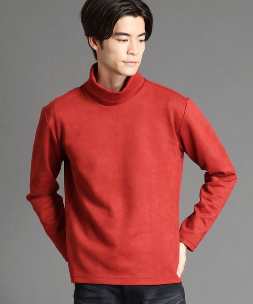 カットソーのスウェード素材を使用した、オフタ-トルプルオ-バ-です。オフネック気味に仕上げているため、ニットのタ-トルネックの様に首回りの締め付けが無いのでタ-トルネックに抵抗がある方にもオススメです。表地はポリエステルのマイクロファイバ-で編まれ、スウェード起毛したカットソー素材。柔らかく、滑らかなタッチ感と上品な光沢感、ハリもありますのでシルエットを綺麗に作ります。シワになりにくく、洗濯後にすぐに乾くので、取り扱いの楽さも魅力の素材です。