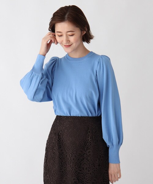 肩にギャザーをあしらったボリュームスリーブがスタイリングしやすいニット【素材】レーヨンとポリエステルを混紡し、強く撚りをかけることによってドライタッチを実現した糸。天竺の編地ながら、ナイロンプレーティングをしているので、ペラペラにならず、1枚で着ても安心感のあるニットです。マシンウォッシャブル機能、UV機能付きでデイリー使いにピッタリな機能を付与しています。※オフホワイト(003)は透け感があるため、インナーの着用をおすすめします。※この製品は、太陽光線中の紫外線(UV)を通しにくくします。この効果は永久的ではありません。【デザイン】袖にギャザーをあしらい、たっぷりとしたボリュームスリーブに仕上げました。身幅はコンパクトながら、アームホールやバストには程よいゆとりを持たせているので、季節の変わり目の汗ばむ日にも張り付かず、肌離れが良く、ボディラインを拾いにくいデザインです。こちらの商品は主に秋に着用いただける商品です。モデル情報:身長166cm B80 W59 H86 着用サイズ:38(M)店舗へのお問い合わせ商品番号:C12-13003●製品寸法:36(S):着丈52cm B88cm 袖丈56cm 肩幅25cm38(M):着丈53cm B91cm 袖丈57cm 肩幅26cm40(L):着丈55cm B94cm 袖丈57cm 肩幅28cm備考: