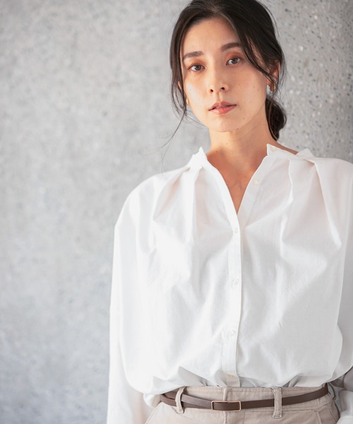 マニッシュな印象のポンチョシャツ コシのある綿素材を使用し、ハリ感がありつつ、程よい柔らかさがあるので、トレンドのポンチョシルエットが綺麗にでて、こなれ感のあるデザインがポイント。ゆったりした身幅で程よく力の抜けた感じが出るので、着るだけでサマになる1枚です。