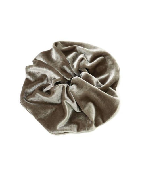 微光沢がきれいなフェイクベロアシュシュ。ほどよくボリューム感があり、くしゅっとギャザーを寄せたフェミニンな仕上がりです。秋冬らしいクラシカルな素材感をポイントにして髪をひとまとめにできる仕様。落ち着いたカラーなので普段使いに便利なヘッドアクセサリーです。