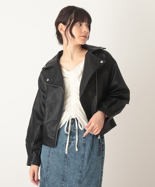 SHOO・LA・RUE/Cutie Blonde/blistorm(ブリストーム)ライダースジャケット【デザイン】定番ダブルタイプのレザージャケット。背中と袖口にタックを入れて全体的に立体感を出し、ややオーバーサイズに仕立てています。余計な装飾のないシンプルなデザインなので長くご愛用頂けます。スカートやワイドパンツなど何にでも合わせやすい一枚です。※ポケット数:横×2【生地感】細かいシボでリアルにちかい表面に仕上げたフェイクレザーです。※裏地あり■サイズ表示について※バイイング商品のため下げ札サイズ表記とワールドサイズ表記が異なります。製品寸法をご確認くださいませ。ワールドサイズコード02=製品サイズ表記Mワールドサイズコード03=製品サイズ表記L#CutieBlonde#Cutie#cutieblonde#cutie#キューティブロンド#キューティ#20代#30代こちらの商品は主に冬に着用いただける商品です。モデル情報:身長168cm B75 W60 H87 着用サイズ:02店舗へのお問い合わせ商品番号:256-43017●製品寸法:02(M):着丈54cm B104cm 袖丈52cm 肩幅49cm03(L):着丈55cm B106cm 袖丈52cm 肩幅51cm備考:重量:02(M)約680g