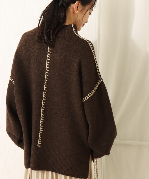 ハンドステッチ風がポイントのオーバーパッチワークニット♪ 一枚でスタイリング映えするハンドステッチが魅力◎ ふっくら柔らかい素材で肌触りよく着て頂けます。 ■point ・切替え部分のハンドステッチ ・程よい高さのモックネック ・前後差のあるスリット ■detail 一枚でスタイリング映えする配色ステッチが可愛い一着◎ カラーによって配色ステッチの色が変わるもの魅力です。 程よい高さのハイネックが首元をすっきり見せてくれます。 お尻に少しかぶるくらいの着丈とスリットのデザインで 体のラインを拾いすぎず華奢見え効果が狙えます◎ カラー展開(カラー本体+配色ステッチ) ・ベージュ+ブラウン ・スモークピンク+アイボリー ・グレイッシュブルー+グレー ・ブラウン+ベージュ ■fabric ふっくらと柔らかく、肌触りのいいニットを使用しています。 手洗い可能なのでデイリー使いにもピッタリ。 …………………… 透け感:なし 厚さ:厚手 裏 地:なし 光沢感:なし 伸縮性:あり ポケット:なし 洗濯方法:手洗い …………………… ※詳しいお手入れ方法は商品タグをご参照ください。 ■coordinate 前後差のスリットでコーディネートのバランスをとってくれるので、 パンツからスカートまで幅広いボトムと合わせて頂けます。 レザーボトムや、マーメイドスカートなど個性的なアイテムにもオススメ◎ 《商品のお気に入り登録》 ・再入荷通知や、ラスト1点の通知、セール通知も受け取ることができます。 《ブランドのお気に入り登録》 ・新商品や再入荷など、お得な情報を受け取ることができます。 ※屋外の光や照明の当たり具合、パソコンなどの閲覧環境によって 実際の色味と異なって見える場合がございます。 予めご了承ください。 ※他のキャンペーンにより、期間中に価格が変動する場合があります。
