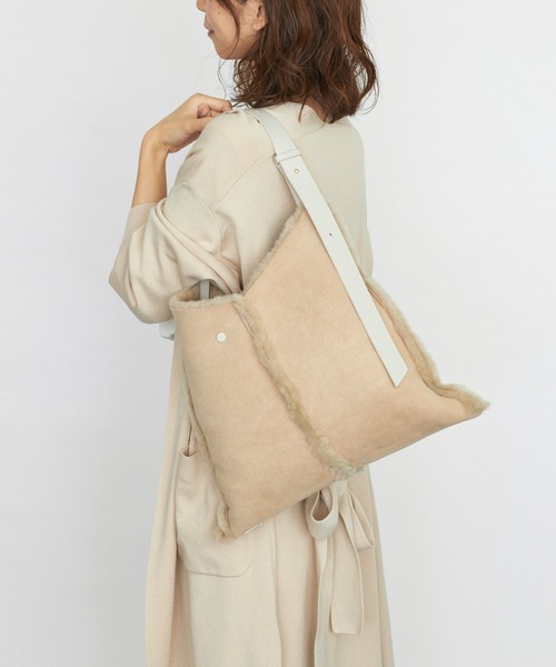 リバーシブルでおしゃれ感2倍のトライアングルバッグ 柔らかなレザーとふわふわなムートンの2種類の素材感がたのしめるバッグです。 スッキリとスタイリッシュなトライアングルデザイン。 ジャケットやコートなどボリュームがでる秋から冬のスタイルに、素材とシルエットでおしゃれをプラスしてくれます。 ショルダーは長さ調節が可能です。 「story./ストーリー」 日本発の人気バッグブランド。トレンド感のあるシルエットと上質なレザー素材。 持つ人のスタイルに自然になじみ、自分らしさを表現すための欠かせないアイテムとして人気の高いバッグブランドです。 【素材】羊革 牛革 【サイズ】W 38.0 × D 5.0 × H 36.0 cm ハンドル高さ:18.0 ~ 30.0 cm 【商品仕様】ポーチ付属(W 21.0 × H 15.0 cm)