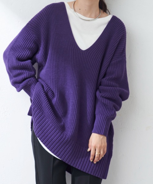 表情豊かな畦編みで仕立てたVネックプルオーバー。 長めの着丈に、ゆとりのあるシルエットがリラックスムードを演出。 すっきりとした深めのVネックが、女性らしい抜け感を漂わせます。 両サイドにはスリットを施し、軽やかな印象もプラス。 インナーのレイヤードで、コーディネートのアレンジが楽しめる一着です。 ベーシックカラーに加え、深みのあるパープルをご用意致しました♪ *********************** 洗濯方法:手洗い 裏地:なし 透け感:なし 伸縮性:あり 光沢感:なし 生地の厚さ:やや厚い *********************** ※ご覧のモニター環境や撮影環境により実際の商品と多少色味が異なって見える場合がございます。 【お気に入り登録がオススメ!】 ●商品のお気に入り登録 「在庫残りわずか」の通知や、「完売カラーの再入荷」、「セール」の通知を受けることができます。 ●ブランドのお気に入り登録 新商品や再入荷等、ブランドのお得な情報を受け取る事が出来ます。