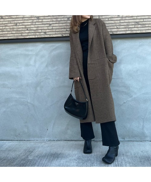 2021 AW 秋冬アイテム 【普段のコーデにプラスするだけでこなれ感たっぷりの大人スタイルコート】 小さめのチェック柄がこなれた印象を引き立ててくれるガウンタイプのコートです。 ▼Design ・ボディラインを拾わないビッグなシルエットとロング丈が魅力。 ・バックに大きくスリットが入っているので歩くとコートに動きが出やすく着映えするデザイン。 ・フロントサイドには便利な大きめポケット付き。 ・きちんとした印象のアイテムなのでオンオフ問わずに活躍します。 ▼Fabric ・シワになりにくいポリエステル素材に少しウールが入っているので裏地なしでも暖か。 ・ダブルフェイス生地なので軽く着心地も抜群です。 ・肌触りも良く柔らかな素材感。 ・小さ目のチェック柄がこなれ感を演出してくれます。 ▼Styling ・パンツにもスカートにも合わせられるおすすめアイテムです。 ・きちんと感があるのでオンオフ問わずに活躍します。 ・オーバーサイズなので中に厚手のニットを着て頂いてもストレスフリーに着て頂けます。 ・長めの丈感で動くとコートに動きが出るのでよりこなれた印象に◎ ----------------------------------------- 【以下ベージュ/チェック参考。カラーにより多少の誤差あり】 ・透け感:透けない ・伸縮性:なし ・生地の厚さ:普通 ・裏地:なし ----------------------------------------- 【スタッフ着用コメント】 身長167cm ふくらはぎ下の長めコートはサイズもオーバーサイズでこなれ感◎ シンプルなインナーに羽織るだけで映えるコーディネートに仕上げてくれます。 大きめポケットも必要なものがすっぽり入って便利 とにかく大人っぽくこなれ感あるコートなのでお手持ちのアイテムにプラスするだけでトレンドコーデに 仕上がりオススメです♪