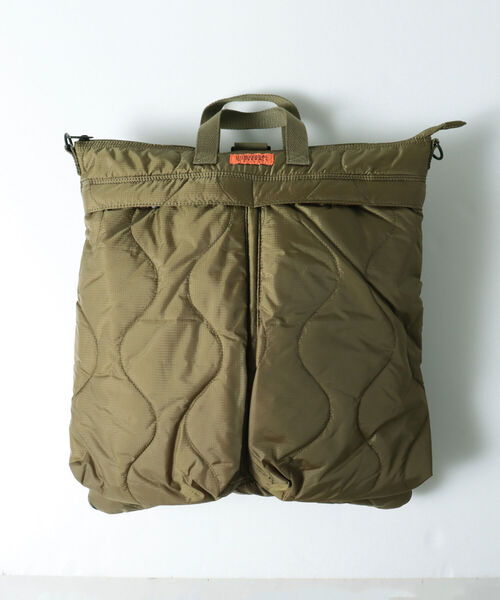 ヴィンテージやミリタリーアイテム好きには愛用者も多いヘルメットバッグは、当時米軍のヘルメットや酸素マスクを持ち運ぶために作られたアイテム。 UNIVERSAL OVERALLより、ひょうたんキルト/ヘチマキルト素材でのご提案です。 手持ち、ショルダー、リュックの3WAY使用が可能で、シーンに合わせての着用を実現。 底の深い外付けポケットが2つ、内部には両サイドにペットボトルや折りたたみ傘などを挿せるホルダーとジップポケットを配備と、仕分け収納もしやすい作り。 裏地はブランドロゴの総柄をあしらったキャッチーなデザインになっています。 【UNIVERSAL OVERALL / ユニバーサルオーバーオール】 1924年に創業したアメリカ、シカゴのワークウェアブランド。 ハードでリーズナブルなアイテムを、ほぼ1世紀近くに渡り拘って追求し続けている。 現在でも、アメリカでは数少ないリアルワークウエアとして、多くのワーカーたちに支持されている。中でも、定番のコットン100%のワークパンツやカバーオール、ショップコートは、古き良きアメリカのワークウェアを愛好する日本のファンたちからも愛されているロングセラーアイテムである。また、彼らはタフなワークウエアを追求していく中で、より着用や洗濯に対して耐久性を持つ綿ポリエステル混紡のチノ素材をいち早く取りいれました。 ※お取扱い上のご注意 アテンションタグを必ずご確認の上、着用又はお取り扱いください。 ※店頭及び屋外での撮影画像は、光の当たり具合で色味が違って見える場合があります。商品の色味は、スタジオ撮影の画像をご参照下さい。 ※商品画像に関しては出来る限り忠実に表示出来るよう努めておりますが、お客様がご利用のモニターの設定及び特性により、実際の商品と比較し色味に若干の誤差が生じる場合があります。 ◇商品のお気に入り登録◇ 【お気に入りに登録】を是非ご活用ください。 再入荷の通知や、ラスト1点の通知、セールの通知がいち早く届きます。 ◇ブランドのお気に入り登録◇ 新商品や再入荷など、いち早くブランドのお得情報が届きます。