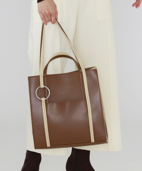【CAST:キャストコロン 2021年秋冬アイテム】【Design/Fabric】表裏でバイカラーに切り替えにしたトートバッグです。表面と裏面で印象チェンジできるので、コーディネートに合わせてスタイリングできるのが一番のポイント。マチも広く、ハンドルもショートとロングの2種類付いているので、機能的にも持ちやすいバックになっています。ハンドル部分につけている金属リングがアクセント。※この商品はサンプルでの撮影を行っています。実際の商品とイメージ、サイズ、品質表示、原産国等が異なる場合がございます。※店頭及び屋外での撮影画像は、光の当たり具合で色味が違って見える場合があります。商品の色味は、スタジオ撮影の画像をご参照ください。