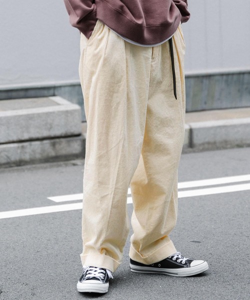 FORK&SPOONのアイコンにもなっているワイドパンツのアイテムから、秋冬に重宝するアイテムが今季も登場。秋冬にマストで持っておきたいコーデュロイパンツを表情ある太畝で仕上げ、存在感が際立つ一本に。すっきりと魅せる二タック仕様、ワイドながらも裾にかけて緩やかなラインのテーパードシルエットで仕上げることで野暮ったさを押さえ、カジュアルながらも上品さも取り入れました。【FORK&SPOON(フォークアンドスプーン)】DOORSのプライベートレーベル。その名前のとおり「毎日食事を摂るように、毎日大切に着てほしい」という思いが込められています。毎日着たくなる様な心地のよいベーシックスタイルは、世代を超えてお楽しみいただけます。-----------------------------透け感 : なし伸縮性 : なし裏地 : なし光沢 : なし生地の厚さ : 普通デザイン : スタンダード-----------------------------※この商品は、素材の特性上、洗濯の際多少縮むことがあります。※この商品は、素材の特性上、毛玉や毛羽立ちが発生することがありますのでご注意ください。※その他お取り扱いに関しましては、商品に付属のアテンションタグをご覧ください。※商品画像は、光の当たり具合やパソコンなどの閲覧環境により、実際の色味と異なって見える場合がございます。予めご了承ください。※商品の色味の目安は、商品単体の画像をご参照ください。モデル身長:176cm着用サイズ:4洗濯表記:洗濯機洗い可 , ドライクリーニング※詳しい洗濯方法については、商品の品質表示タグをご覧ください
