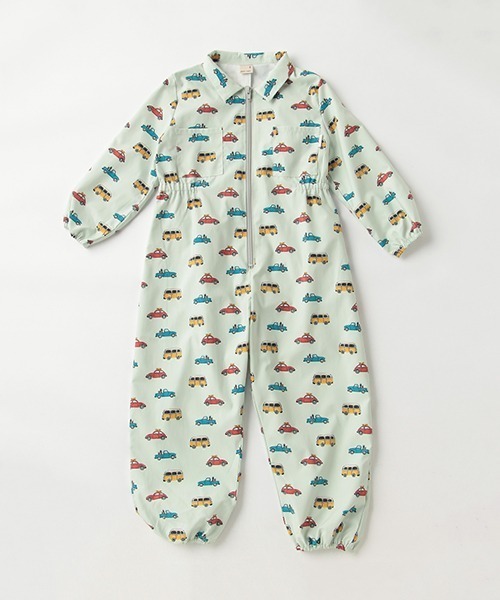 お遊びタイムを楽しく演出してくれる総柄デザインのプレイウェアです。車、恐竜とお子さま心をくすぐるモチーフに注目♪ ポリエステル素材なので汚れがつきにくく、公園などでのお砂場着としても便利。フロントはジップ式で簡単に着脱が行えます。内側にはお名前を記入できるタグつきです。【透け感】やや透ける【生地の厚さ】普通【伸縮性】なし【裏地】なし【ポケット】あり