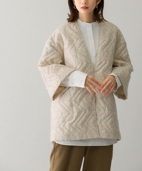 【表情のある生地感が珍しいジャケット】凸凹感のあるツイード調のふんわりとした生地にキルティングを掛け合わせた表情のある1着。深めに設定されたVネックと、7分袖はレイヤードコーデに最適。肌寒くなってくる時期の軽アウターにぴったりなアイテムです。POINT・表情のあるツイード生地×キルティング・レイヤードコーデが楽しめるデザイン・大人っぽさを引き上げる程良い光沢感COORDINATEこれからの季節、チュールトップスをレイヤードするだけで一気にこなれ感が増します。もう少し肌寒くなれば長めのグローブを合わせるものおすすめ。-----------------------------《スタッフ着用コメント》[スタッフA]年齢 : 20代前半, 身長 : 155cm, 体型 : 普通普段の着用サイズ : トップスS~L/ボトムスS,M【着用カラー/サイズ】L.BEIGE/one【サイズ感】袖は手首が見えるくらいの丈感ですのでワイドシルエットでも動きやすいです。厚地ニットも余裕で着ていただけます。【素材感・着心地】軽くて羽織りやすかったです。光沢や凹凸のある生地は存在感があります。長いシーズンで着ていただけます![スタッフB]年齢 : 20代後半, 身長 : 165cm, 体型 : 普通普段の着用サイズ : トップスS~L/ボトムスM, L【着用カラー/サイズ】L.BEIGE/one【サイズ感】中にニットを着ても全体的にゆとりがあります。袖丈は手首が見える丈感です。【素材感・着心地】軽く柔らかいジャケットです。裏地もサラッとした素材なので肌当たりも良く着る事ができます。-----------------------------※この商品は、素材の特性上引っ掛かりやすいのでご注意ください。※着用中は、バッグやベルトなどと摩擦にご注意ください。※その他お取り扱いに関しましては、商品に付属のアテンションタグをご覧ください。総重量 : 約690g※商品画像は、光の当たり具合やパソコンなどの閲覧環境により、実際の色味と異なって見える場合がございます。予めご了承ください。※商品の色味の目安は、商品単体の画像をご...one
