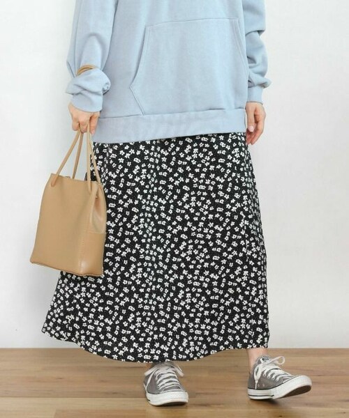 モノトーンの小花柄が大人ガーリーなロングスカート。 裾に向かって広がるフレアシルエットが歩く度にひらひらと揺れ、 女性らしさを演出してくれます。 長めの着丈と全体に施された小花柄プリントが上品な印象に。 ブラウスと合わせたきれいめスタイルはもちろん、 Tシャツやスウェットとのカジュアルダウンさせた着こなしもおすすめです。 サイドファスナー仕様で着脱しやすいのも嬉しいポイント。 ベルトループ付きでウエストのサイズ調節も◎ バックウエストはゴム仕様でストレスフリーな履き心地です。 ポリエステル100%でシワになりにくく、 滑らかでさらっとした肌触りです。 - - - - - - - - - - - - - - - - - - - - - - - - - - - - - - - - - 透け感:なし 裏地:あり 伸縮性:なし 光沢感:なし - - - - - - - - - - - - - - - - - - - - - - - - - - - - - - - - -