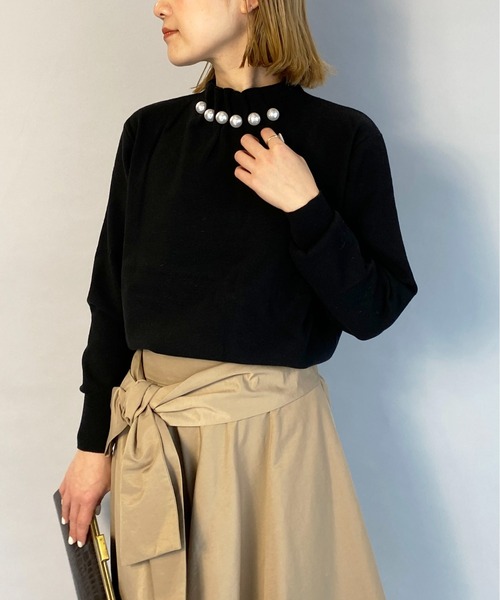 大好評につき追加分再入荷♪大きめのパールがアクセントになるニット。もっちりとした肌触りのいいニットを生地を使用、襟ぐりに立体的なタックやパールを配し、可愛らしく華やかな一枚に仕上げました。ショート丈デザインなのでコーデのバランスも取りやすく、スカートやハイウエストのワイドパンツなどとの相性も◎フェミニン、ガーリースタイルやきれいめスタイルにピッタリのアイテムです。※撮影場所や明るさにより実際の商品と色味が若干異なる場合がございます。 ☆商品のお気に入り♡登録を押せば”再入荷通知”や”残りわずか通知” 値下げのお知らせが届きます!お気に入りのブランド登録していただければ新商品入荷のお知らせも届きますので是非登録してみて下さい。
