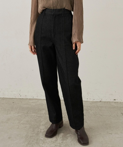 【センタープリーツデニムパンツ】センターラインにプリーツとステッチを施した美脚効果抜群の定番デニムウエストからヒップまでは身体に沿う綺麗なラインで、ももから裾まではラインを拾わないややゆとりのある絶妙なこだわりのシルエットにPOINT・カジュアルなデニムながらも女性らしく着れるシルエットに・オールシーズン履けるデニム素材を使用・センタープリーツとステッチで美脚効果も期待できる1枚STYLINGアントマリーズで展開しているブラウスやカーディガンとのシンプルなスタイリングもおすすめ。ロングシーズン着回せるデニム素材を使用していて、ワードローブに1枚あると着回しの効く万能アイテム。ハイウエストでデザインでインスタイルはもちろんアウトスタイルでもスッキリ着こなせます◎------------------------透け感/なし光沢感/なし伸縮性/なし裏 地/なし厚 み/普通------------------------※詳しいお手入れ方法は商品タグをご参照ください。【商品のお気に入り登録】完売カラーの再入荷通知やラスト1点の通知プライスダウンの通知も受け取ることができます。ぜひご登録ください◎【ブランドのお気に入り登録】新商品や再入荷など、ブランドの情報をいち早くお知らせします!ぜひご登録ください◎※ご注意※・屋外の光や照明の当たり具合で、実際の商品の色味とカラー別画像の色味に若干の違いが発生する場合がございます。・詳細画像と併せてご確認の上、ご注文いただきますようお願い致します。