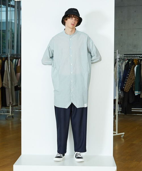 フラボアパークよりベーシックで定番的なシャツながらシルエット、細部のディテールにこだわったシャツブラウスが登場。 サラッとした肌触りとしなやかな風合いが肩ひじを張らずにラフに使えるストライプ素材。 首周りはスッキリとしたスタンドカラーに大きくドロップしたショルダー、ゆったりとした袖周りのロングチュニック丈のシャツはゆったりとしながらもスッキリとしたシルエットが特徴的。 公園の遊具や砂場の山などをアイコニックに取り入れた「三角」が袖開きの飾りに付いていたり、背中にはネームをさり気なくプリントしてアクセントを効かせています。 裾のカットは良く見ると三角に刻まれていたり、背中のタックが3本だったりとブランドらしいユーモアと遊び心が可愛いデザインに。 細めのストライプが無地見えもして合わせるアイテムを選ばない点が嬉しいポイント。 サイズは1,2,と2サイズ展開があり、サイズの変化であえてルーズに楽しむ事も出来るジェンダーレスなアイテムです。 縫い糸にはペットボトルを再生した原料を使用した糸を使用していたり、再生可能な有機性資源のバイオマス釦を使用したりサステナブルにも配慮した取り組みをしています。 *こちらの商品はユニセックス商品です。 【ブランド情報】 FRAPBOIS PARK/フラボア パーク <いろいろな人が集まるところ> はじめましてやそうじゃない人にも いろいろなスタイルに いろいろとプラスできる いろいろなアイテムをそろえました。 この[PARK(パーク)]レーベルは JOIN/ジョインをキーワードに、 いろいろなクリエイターやアーティスト、 今、気になるモノ・コトなどを取り入れて アイテムを製作していきます。 ジェンダーや年齢をこえた いろいろな人たちにお楽しみいただけるよう、 スタンダードなアイテムを中心に サイズ展開の幅を広げています。 ---------------------------------------------------------------------- 【お気に入り登録】がおすすめです。 ■商品のお気に入り登録 再入荷、残り1点、セールなどの通知を受け取ることができます。 →商品ページ ♡ をクリック ■ショップのお気に入り登録 新商品や再入荷、セール、クーポン配布、ショップニュースなど、いち早くショップの情報を受け取ることができます。 →「♡お気に入りショップに追加」 をクリック ----------------------------------------------------------------------