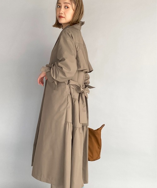 バックコンシャスなリボンコート。ベーシックなコートのバックにティアードデザインを配し、立体的で華やかな印象の1枚に仕上げました。袖口やウエストベルトをキュッと締めて女性らしさのあるメリハリスタイルが楽しめます。スカートやワンピースにヒールでレディーなキレイめスタイル以外にパンツ合わせのハンサムスタイルにも◎です。アイテム次第で結婚式や二次会などのパーティーシーンでも活躍できる一品です。※撮影場所や明るさにより実際の商品と色味が若干異なる場合がございます。 ☆商品のお気に入り♡登録を押せば”再入荷通知”や”残りわずか通知” 値下げのお知らせが届きます!お気に入りのブランド登録していただければ新商品入荷のお知らせも届きますので是非登録してみて下さい。