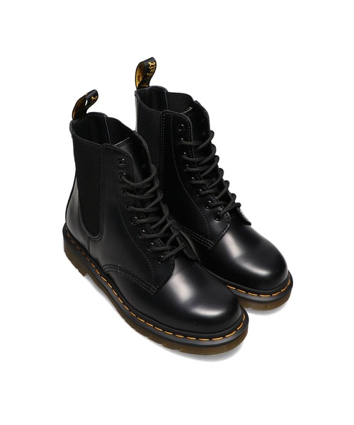 【国内正規品】 SMOOTH:クラシックなドクターマーチンのレザー。耐久性があり滑らかな仕上がり。 アイコニックな定番ブーツのシルエットはそのままに、ガセット(サイドゴア)を備えてアップデートしました。 伸縮性のあるガセットを取り付けて、機能性もファッション性も更に進化しています。 ウェルトにはアイコニックなイエローステッチを施して、ブーツの履き口にヒールループを付けて仕上げました。 ベースとなる「1460 8ホールブーツ」はドクターマーチンの記念すべきファーストモデル。 ときには慎ましやかなワークブーツ、ときにはサブカルチャーのアイコンとしてスタイリストからスケーター、パンクスから詩人、ロッカーズからルードボーイズまで、多種多様な人々に愛されています。 品番:26962001
