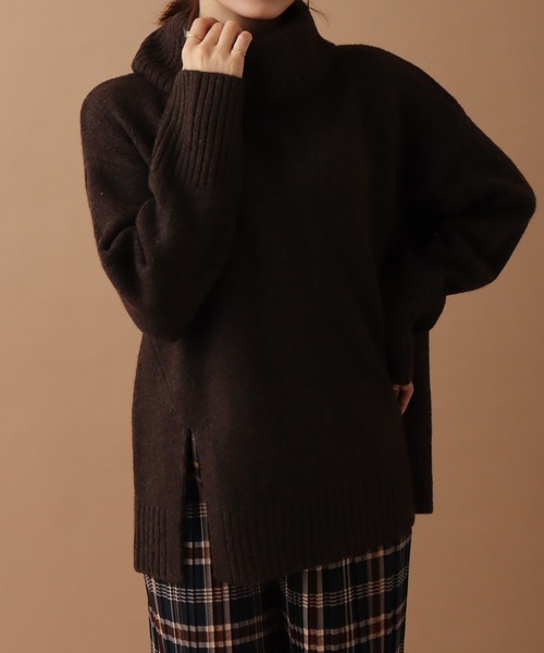 フロントスリットがポイントのオフタートルネックニット♪ ゆったりとしたタートルニットがこなれ感を演出◎ ふっくら柔らかい素材感で肌触り良く着て頂けます。 ■point ・右フロントのスリット ・ゆったりとしたタートルネック ・ふっくら柔らかい素材感 ・オーバーサイズのシルエット ■detail 右フロントのスリットがポイントの一着◎ 全体的にオーバーサイズのシルエットですが、 袖と裾に施した太めのリブデザインでスッキリ見えします。 ゆったりとしたタートルネックは、一折りして着るのはもちろん、 折らずにくしゅくしゅっと着て頂くとニュアンスのある着こなしに◎ ヒップに少しかぶるくらいの着丈なので華奢見え効果も狙えます。 ■fabric ふっくらと柔らかく、肌触りのいいニットを使用しています。 手洗い可能なのでデイリー使いにもピッタリ。 …………………… 透け感:なし 厚さ:厚手 裏 地:なし 光沢感:なし 伸縮性:あり ポケット:なし 洗濯方法:手洗い …………………… ※詳しいお手入れ方法は商品タグをご参照ください。 ■coordinate スリットを活かしたロングシャツやカットソーとの レイヤードスタイルがオススメ◎ ざっくりとしたシルエットなので柔らかい素材の ワンピースの上からレイヤードする着こなしも楽しめます。 もちろん定番のデニムでもスタイリング映えする万能ニットです◎ 《商品のお気に入り登録》 ・再入荷通知や、ラスト1点の通知、セール通知も受け取ることができます。 《ブランドのお気に入り登録》 ・新商品や再入荷など、お得な情報を受け取ることができます。 ※屋外の光や照明の当たり具合、パソコンなどの閲覧環境によって 実際の色味と異なって見える場合がございます。 予めご了承ください。 ※他のキャンペーンにより、期間中に価格が変動する場合があります。