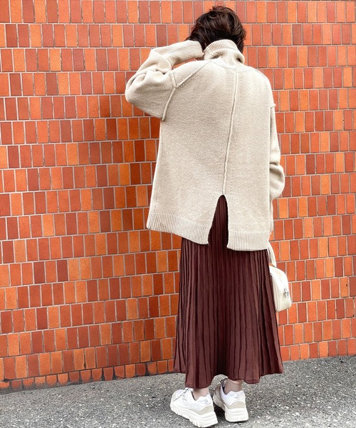 後ろスリットがポイントのオフタートルネックニット 全体的にオーバーサイズのシルエットが 女性らしく華奢見え効果を狙えます◎ ふっくら柔らかい素材で肌触り良く着て頂けます。 ■point ・後ろに深めのスリット(20cm) ・ゆったりとしたタートルネック ・ふっくら柔らかい素材感 ・オーバーサイズのシルエット ■detail 後ろの深めスリットがポイントの1着◎ 全体的にオーバーサイズのシルエットですが、 前後差がありフロントがラウンド状になっている為 華奢見え効果が狙えます♪ ゆったりとしたタートルネックは、一折りして着るのはもちろん、 折らずにくしゅくしゅっと着て頂くとニュアンスのある着こなしに◎ ■fabric ふっくらと柔らかく、肌触りのいいニットを使用しています。 手洗い可能なのでデイリー使いにもピッタリ。 …………………… 透け感:なし 厚さ:厚手 裏 地:なし 光沢感:なし 伸縮性:あり ポケット:なし 洗濯方法:手洗い …………………… ※詳しいお手入れ方法は商品タグをご参照ください。 ■coordinate スリットデザインと前後差のある着丈を活かした、 ロングシャツやカットソーとのレイヤードがオススメ◎ もちろん1枚でもスタイリング映えするので、 ボトムを選ばず幅広いコーディネートが楽しめます。 《商品のお気に入り登録》 ・再入荷通知や、ラスト1点の通知、セール通知も受け取ることができます。 《ブランドのお気に入り登録》 ・新商品や再入荷など、お得な情報を受け取ることができます。 ※屋外の光や照明の当たり具合、パソコンなどの閲覧環境によって 実際の色味と異なって見える場合がございます。 予めご了承ください。 ※他のキャンペーンにより、期間中に価格が変動する場合があります。