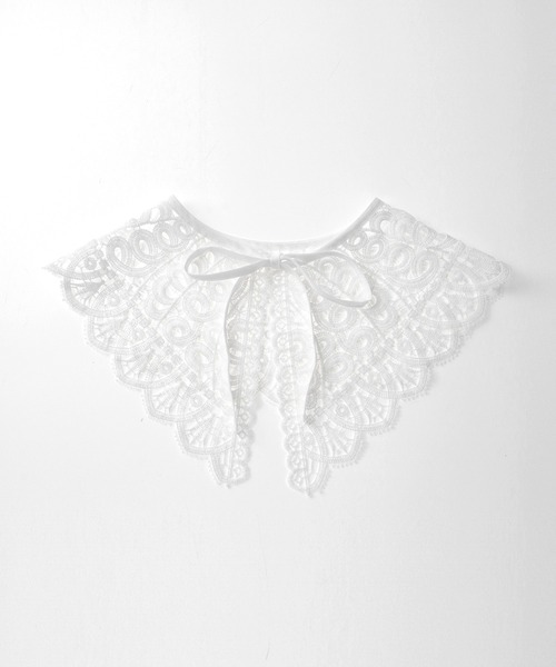 普段のコーデを格上げしてくれる、便利な付け衿。 女性らしい繊細なレースデザイン。 フロントでリボンを結ぶ簡単タイプで、可愛らしさもプラス♪ シンプルなニットやスウェット、ワンピースなどに合わせるだけで、手軽に今年らしい上品スタイルが完成します。 品番:593-117-7609 ※湿度・摩擦により多少色落ちする可能性があります。
