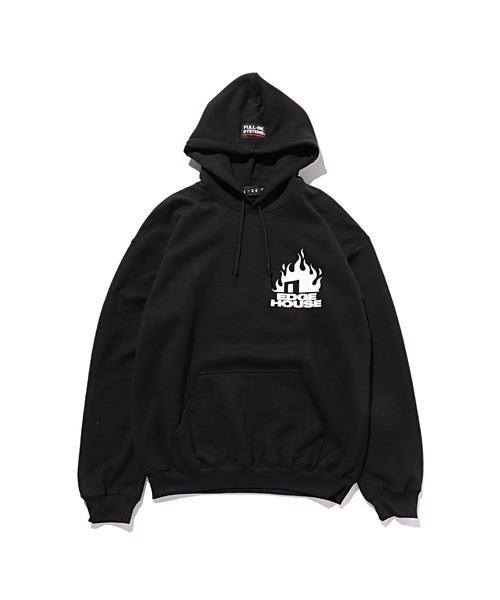 DJ DARUMA&JOMMYがレジデントを務めるTOKYO発のパーティ、"EDGE HOUSE" のFULL-BK によるオフィシャルマーチャンダイズのプルオーバーフーディーです。グラフィックはTOKYOを代表するグラフィックデザイナーの1人であるGUCCIMAZEによるデザイン。