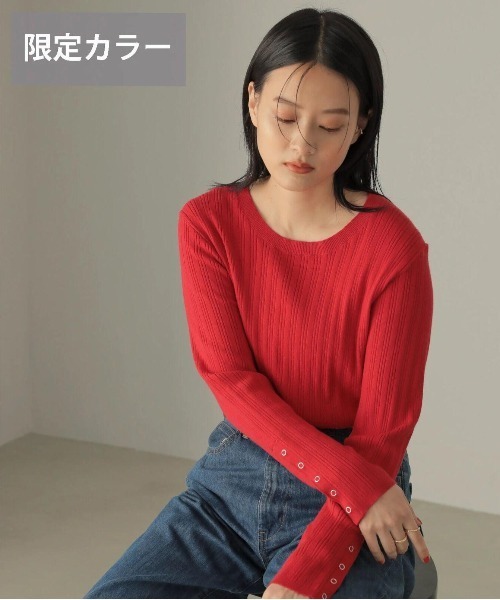 表面感のあるランダムニットが女性らしいシルエットをメイクするプルオーバー。 袖ボタンデザインでスタイリングにアクセントを効かせます。 すっきりときれいな首元に導く、シンプルなネックラインも◎ どんなボトムスにも合わせやすい、着回し力も抜群なアイテムです。 ※【レッド】はWEB限定カラーです How to care(お手入れ方法) ・洗濯:可(30℃限度/洗濯ネット使用) ・漂白:不可 ・タンブル乾燥:不可 ・自然乾燥:日陰平干し ・アイロン:中温150℃まで(あて布使用) ・ドライクリーニング:石油系溶剤 ● AMERICAN HOLIC ● (アメリカンホリック) 大人の女性の毎日を軽やかで豊かにするブランド。 カジュアルなのにオシャレ、コーディネートも楽。ONにもOFFにも等身大で楽しむオトナの日常着をテーマに、スタイリッシュかつ自然体を楽しめるカジュアルスタイルを提案します。 ▼ 商品のお気に入り登録がおすすめです ▼ 商品ページ内のハートマークをクリック。完売時の再入荷や、最後の1点の通知、コーディネート画像がアップされたとき、お得なお値下げの際の通知を受ける事ができます。 【お知らせ】ページでも通知が確認できます。