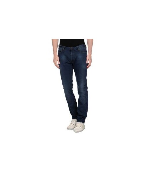 PAUL SMITH JEANS Denim pants. stretch, denim, solid color, mid rise, logo detail, faded effect, dark wash, front closure, button closing, multipockets, straight leg, large sized. 98% Cotton, 2% Elastane