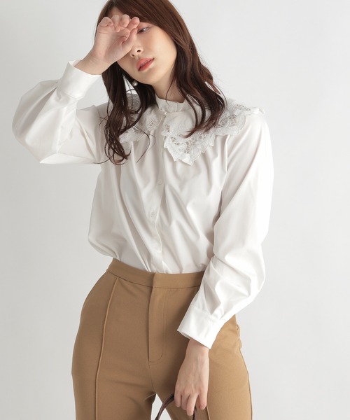 付け襟でレディスタイルトレンドのレース襟がポイントのブラウス。新たなレディスタイルとしてこの秋冬の注目アイテムです。別襟はオリジナルデザイン。取り外してつけるだけで他のアイテムをもブラッシュアップできます。シャツは無駄を省いたシンプルデザイン。その日の気分やシーンに合わせて楽しめる一枚です。【素材】本体平織り:ややハリと滑りのある、きれいめでシワになりにくい素材 カットレース襟:やや光沢のある糸で、しっかり柄を刺繍しているので張り感強めストレッチなし透け感なし裏地なしファスナーなしーーーーーーーーーーーーーーーーーーーーーーー▼ 商品のお気に入り登録 ▼完売カラーの再入荷通知や、ラスト1点の通知、セールの通知も受け取ることができます。▼ ブランドのお気に入り登録 ▼新商品や再入荷など、ブランドのお得な情報をいち早くお知らせ!ぜひご登録ください!※屋内外の光や照明の当たり具合で、実際の商品の色味とカラー別画像の色味に違いが発生する場合がございます。 色味はスタジオ撮影の詳細画像にてご確認ください。※生地の寄り画像が最も実物に近い色味となります。