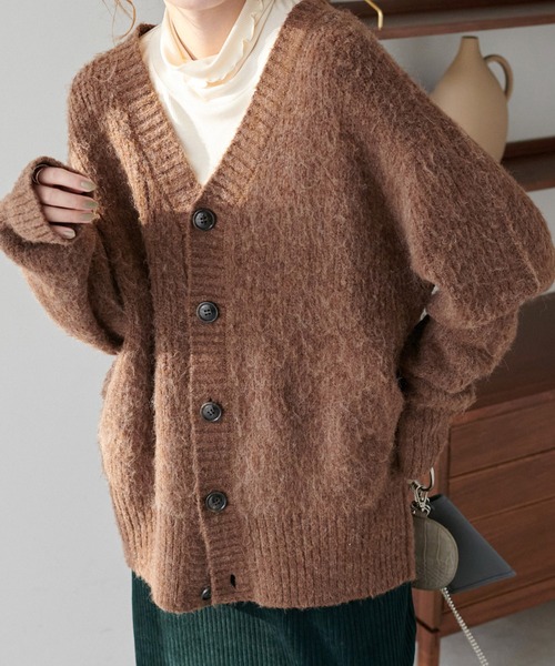 色違いで揃えたくなる豊富なカラーバリエーションで登場!起毛感のある素材で、温かみを感じるビッグカーディガン。Vネックに、ゆったりとしたシルエットが抜け感のある着こなしを演出。襟元や袖口、裾の太めのリブデザインが、アクセントをプラスします。何着も揃えたくなる、豊富なカラーバリエーションも魅力。カットソーやシャツなど、合わせるアイテムを選ばずにお楽しみ頂けます♪※グリーン、パープルはWEB限定カラーでございます。【STAFF着用コメント】PRESS/WOMENS(160cm)ゆったりシルエットが可愛いカーディガン♡Vネックなので、ハイネックやシャツなどを重ねてきても可愛い◎PRESS/WOMENS(155cm)チクチクしない素材感で肌触りも良かったです!いろんなアイテムにでも合わせやすく、流行に関係なく長く着用して頂けます。***********************洗濯方法:ドライクリーニング裏地:なし透け感:なし伸縮性:あり光沢感:なし生地の厚さ:やや厚い***********************※ご覧のモニター環境や撮影環境により実際の商品と多少色味が異なって見える場合がございます。【お気に入り登録がオススメ!】●商品のお気に入り登録「在庫残りわずか」の通知や、「完売カラーの再入荷」、「セール」の通知を受けることができます。●ブランドのお気に入り登録新商品や再入荷等、ブランドのお得な情報を受け取る事が出来ます。