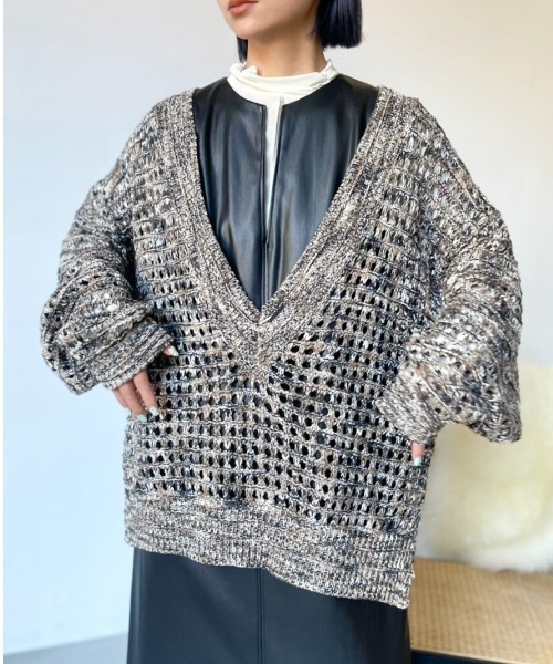 【Vネッククロシェニットプルオーバー】クロシェ編みの透け感がお洒落なVネックニットプルオーバーPOINT・ボリュームのあるサイズ感ですが、ざっくりと編み立てているので着膨れせずしなやかに身体に沿うシルエット・顔まわりに抜け感を与えてくれる深めのキーネックデザイン・様々なアイテムとのレイヤードを楽しめる1枚COORDINATE・ロングスカートにゆったりと合わせる着こなしや、ワークパンツなどカジュアルスタイルもお勧め。・デニムとの相性はもちろん、ワンピースの上にレイヤードしてもこなれた印象に◎ーーーーーーーーーーーーーーーーーーーーー裏地ーーーなし透け感ーーーなし伸縮性ーーーなし生地感ーーー普通季節ーーー秋冬ーーーーーーーーーーーーーーーーーーーーー※柔らかい生地の為引っ掛けなどにはお気を付けください。※画像の商品は光の照射や角度により、実物と色味が異なる場合がございます。※製品によっては染料の特性上、湿った状態や汗をかいた状態での長時間の放置、または摩擦により、他のものへ色移りする恐れがありますので、着用時にはご注意下さい。 ※お洗濯は洗濯ネットを使用し、他のものとの混合洗いはお避け下さい。色落ちや色移りの原因となります。 タンブラー乾燥はお避け下さい。 ※風通しがよく、湿気の少ない日の当たらない場所で保管して下さい。 ※また製品加工上、お手元に届く際に匂いが生じる場合がありますが、 ご使用を続けていく事により匂いは軽減されます。■商品のお気に入り登録お気に入りアイテムの値下げ・再入荷・在庫1点などの通知を受け取ることができます。■ブランドのお気に入り登録新商品や再入荷、セール、クーポン配布などお得な情報を受け取ることができます。---------------------------------------------------------------Solace/ソレイス“MODE”媚びない自分らしいシルエット“CASUAL”シーンレスで手に取りやすいプライス“ART”どこかエッジのある遊び心トレンドにとらわれず “自分” とマッチするスタイルを提案
