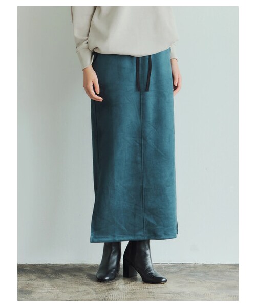 フェミニンな雰囲気をプラスするタイトシルエットのスカート。 ダンボールスエード素材のなめらかな風合いがさりげない美しさをプラスします。 スリットからチラッと見える足首が抜け感をメイク。 気負わないおしゃれが楽しめる、ウエストゴム仕様のリラックス感も魅力的な1枚です。