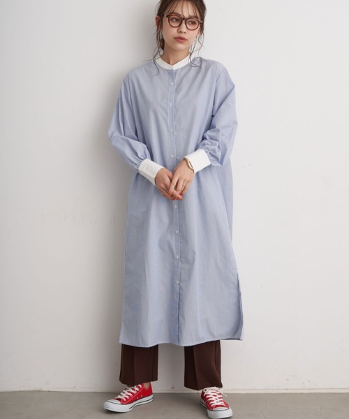 こだわりのきいたディテールが光るシャツワンピース。すっきりとしたバンドカラーが顔まわりをよりきれいに見せてくれる1枚です。ほどよくボリューム感のある袖のデザインで今季らしい着こなしに。広がりすぎないシルエットで大人っぽく着こなせる、マストハブアイテムです。● earth music&ecology ●(アース ミュージック&エコロジー)流行とナチュラル感を取り入れ、幅広い層に向けて発信するブランド。オシャレ着から通勤、カジュアルまで女性の様々なシーンで楽しんでいただけるナチュラルガーリッシュなアイテムを展開。 ▼ 商品のお気に入り登録がおすすめです ▼商品ページ内のハートマークをクリック。完売時の再入荷や、最後の1点の通知、コーディネート画像がアップされたとき、お得なお値下げの際の通知を受ける事ができます。【お知らせ】ページでも通知が確認できます。
