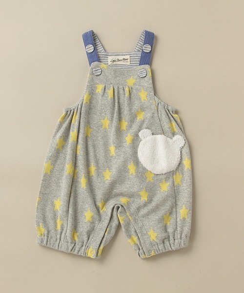 星柄のジャガード生地を使ったキュートなサロペットです。 モコモコ生地のクマモチーフのポケットを添えて、お子さまにとってもお似合いな愛らしい仕上がりに♪ 肩ヒモの長さはボタンで2段階調節が可能。リラックスして過ごせるラフなシルエットはヘビーローテーション間違いなしです。【おすすめの着用時期は秋シーズン】【透け感】透けない【生地の厚さ】普通【伸縮性】あり【裏地】なし【ポケット】あり【アジャスター】なし