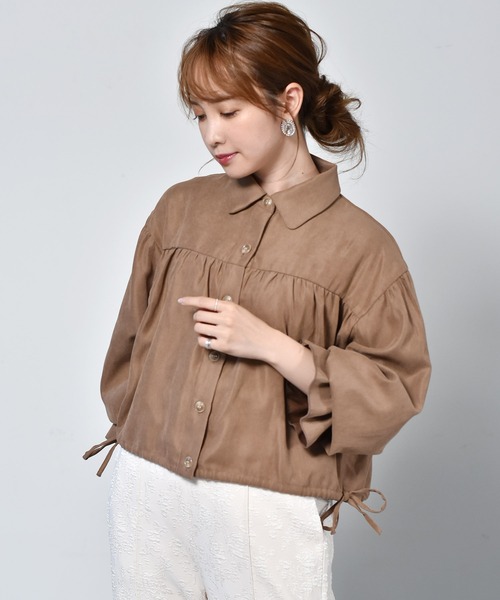 可愛らしくさのポイントを詰めたクロップドシャツ 切り替えからギャザーを施したり、サイドはリボンデザイン、袖にはフリルデザインなどの可愛らしい要素を詰め込んだクロップドシャツ サイドのリボンはぎゅっと絞ってシルエットも変えられます。 また、シャツデザインなので、ボタンを全てとめても、ボタンを開けてはおりとしても◎ 着方色々のアイテムです。 ※撮影環境やご覧のモニター環境によって実際の商品とお色味が多少異なってみえる場合がございます。ご理解の程何卒よろしくお願い致します。