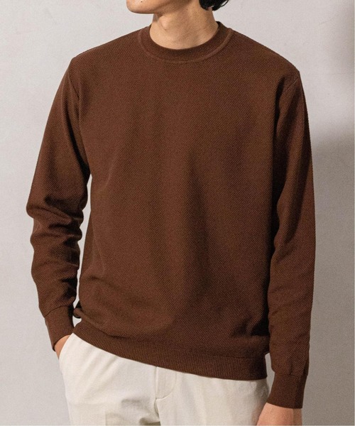 《カノコの編地がアクセントになるクルーネックニット》 ■デザイン ややリラックスしたシルエットのクルーネックニット。シンプルなカノコ編みがさりげないアクセントになります。 品のある見た目ながら、水洗い可能でニットとスウェットの間の感覚でご使用いただけます。 ■素材 毛羽を抑える加工を施したコットン/アクリルの糸を使用。 編地の目面が綺麗に立ち、サラッとしたクリアで柔らかくもっちりとした肌触りと着心地に仕上がっています。アクリルを加えことで膨らみ、軽さ、光沢感がプラス。 ********************** 透け感:なし 裏地:なし 伸縮性:あり 光沢感:なし 生地の厚さ:ふつう ********************** 【ご注意】 ※商品の色味につきまして、お客様のお使いのPCのモニター環境により実際のカラーと画像の色味が違って見える場合が御座います。予めご了承の上、ご注文下さい。 ※店頭・外での撮影画像は光の加減で、実際の商品より明るく見える場合が御座います。商品の色味はスタジオ撮影の画像を参考にして下さい。