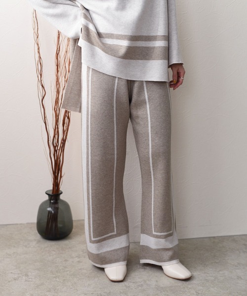 2021 AW Collection 昨年大好評だったトリミング配色ニットのパンツverが初登場♡ 毛混の程よく柔らかい糸を使用したニットパンツ。 ニット素材なのに着ぶくれして見えず、サラッと着用していただけます。 ウエストも総ゴム仕様なのでストレスフリーでリラクシーな履き心地ながら、 程よいハイウエスト位置から裾にむかってストレートにデザインされたトリミングデザインの縦ラインで、 スタイルアップして見せてくれるのが嬉しいポイント♪ シンプルなトップスと合わせてパンツをメインとしたコーディネートでも、 オーバーサイズのゆったりとしたトップスやワンピースとレイヤードして、 裾から柄をのぞかせるのもおすすめです。 ◎単品ではもちろん、 同素材でお作りした【トリミング配色ニットTOPS 81708A-2】とのセットアップで着用頂くことで、 リラクシーかつ、より感度の高いスタイリングがお楽しみいただけます。 ●ウエスト:総ゴム仕様 ※画像の商品はサンプルです。 実際の商品と仕様や加工、サイズが若干異なる場合がございます。 ※撮影場所やイメージにより、実際の商品と色味が若干異なる場合がございます。 ※サイズに若干の個体差が生じる場合がございます。 予めご了承下さい。 【オススメの機能について】 《商品のお気に入り登録》により、完売カラーの再入荷通知、ラスト1点の通知、セールの通知も受け取ることができます! 《ブランドのお気に入り登録》により、新商品や再入荷など、イチ早くブランドのお得なセールやクーポン配布などの情報を受け取ることができます! お得な情報をGETして頂く為にも、是非ご活用くださいませ