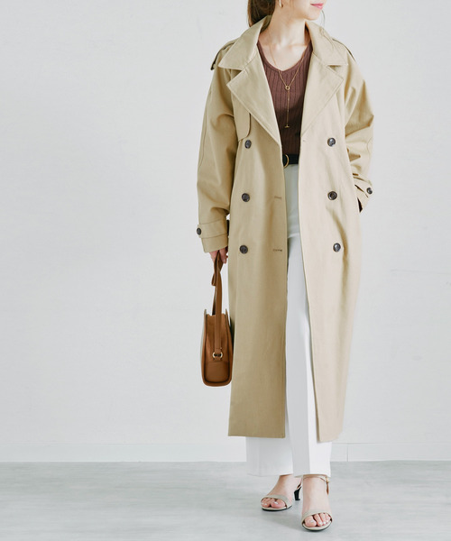◆オーバーサイズでこなれた大人の抜け感コーデ◆ 肩を落としたオーバーサイズのロングトレンチは1枚でスタイリッシュな着こなしに。 スカートスタイルにも馴染みやすい綺麗なAラインシルエットに仕上げました。 胸元のガンフラップと肩のエポレットでトレンド感のなかにも トラディショナルなトレンチコートの要素をプラス。 程よい柔らかさのコットン素材で扱いやすく、ロングシーズン着用可能です。 合わせやすいデザインで、毎日使っていただける1着です。