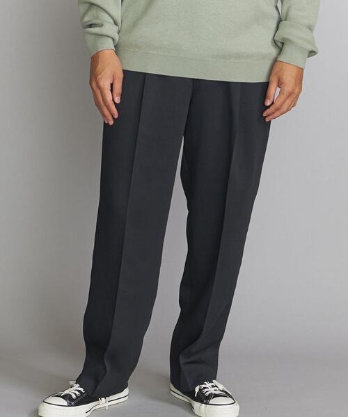 ■ボリューミーなワイドストレートパンツ■■デザイン深めのタックとたっぷりとしたヒップからもも周りをそのまま裾に繋げる事で、ボリューム感のあるストレートシルエットを構築。生地の落ち感とシルエットが絶妙にマッチしたパンツが完成しました。■素材糸の中がマカロニ状になっている中空ポリエステルの糸で生地を作製し、軽さを持たせました。生地を裏使いする事で生まれる光沢の少ないマットなルックスと、ドライな風合いが特徴です。■コーディネートミニマルな雰囲気のコーディネートや、ボリュームに負けないゆったりシルエットのトップスとの合わせがおすすめです。============================裏地:なし透け感:なし生地の伸び:なし光沢感:ややありケア方法:手洗い可・ドライクリーニング============================【注意事項】※商品を使用前に、タグ等に記載されている「取り扱い上の注意書き」、「洗濯表示」を必ずご確認ください。※商品画像は、光の当たり具合やパソコンなどの閲覧環境により、実際の色味と異なって見える場合がございます。予めご了承ください。※商品の色味の目安は、商品単体の画像をご参照ください。店舗へお問い合わせの際は、全国のBEAUTY & YOUTH各店舗まで下記の品名/品番をお申し付け下さい。品名:SC FLAPPY BRKN 1P-ST 9 品番:1214-177-8281