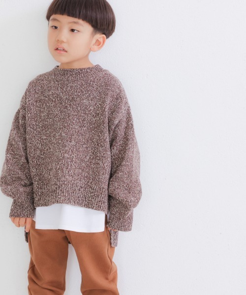 霜降り状の杢調の柄がかわいいニット。 チュニック丈で前後差があり、少しボリューム感のあるお袖もポイント。 前は少し短いのでインナーを見せたレイヤードスタイルがオススメ! ハイネックで首も暖かく真冬まで使って頂けるニットです。