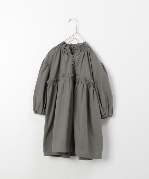 ネック周りと、胸下にたっぷりギャザーを入れたボリューム感のあるワンピース。 少しハリのあるコットンを使用しているので、形がきれいに出るのが特徴です。 横からのシルエットが特に可愛くおすすめです! 寒くなったらタイツと合わせるのがGOOD! ちょっぴり”おすまし”に着こなすのがおすすめで、229204 ネップケーブルベレー帽をプラスすると可愛いです!