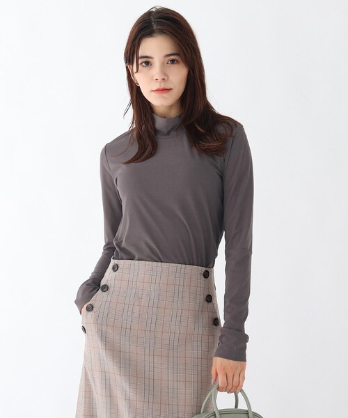 ややシアー(透け)感のあるカットソー素材で仕立てたハイネックトップス。コンパクト目のシルエットで、インにキャミソールやベアトップをあわせればトップスとしても、またスウェットやニットのインに合わせるレイヤードアイテムとしても。透けすぎない素材感で子供っぽくならず、今年らしいニュアンスをスタイルに取り入れて。こちらの商品は主に秋に着用いただける商品です。モデル情報:身長171cm B80 W60 H85 着用サイズ:38(M)店舗へのお問い合わせ商品番号:637-13238●製品寸法:38(M):着丈57cm B89cm 袖丈65cm 肩幅38cm 首周り36cm タートル部分H7cm40(L):着丈58cm B92cm 袖丈66cm 肩幅38cm 首周り36cm タートル部分H7cm備考: