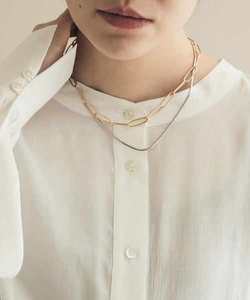 【コーディネート色々◎】大ぶりの縦長チェーンとシンプルなスネークチェーンのセット。重ね付けはもちろん、単品使いもOKでコーディネート色々◎シャツブラウスやスウェットなど、どんなジャンルのスタイリングにも馴染んでくれる一点です。※メッキ製品は変色してしまいがちです。こまめなお手入れで防止してください。アレルギー体質の方や体調が低下している方など、かぶれることがありますので十分にご注意ください。※アクセサリーは壊れやすいものです。取扱いにご注意ください。※その他お取り扱いに関しましては、商品に付属のアテンションタグをご覧ください。※商品画像は、光の当たり具合やパソコンなどの閲覧環境により、実際の色味と異なって見える場合がございます。予めご了承ください。※商品の色味の目安は、商品単体の画像をご参照ください。