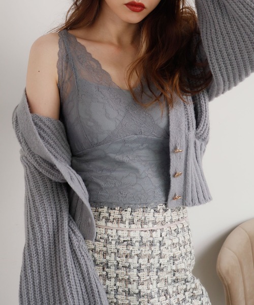 ふんだんにレースをあしらったレディライクなビスチェ。立体感のあるパターンでメリハリのある女性らしい美スタイルをメイクします。レイヤードコーデのインナーとしても活躍してくれる、ワードローブに備えておくと重宝しそうなアイテムです。