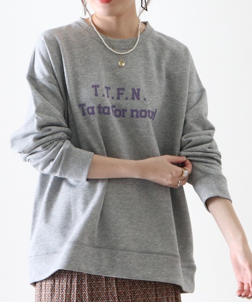 大人カジュアルなスタイリングにぴったりなロゴスウェット*ほどよくルーズなシルエットがこなれ感のあるアイテムです■point・フロントのロゴがアクセントなプルオーバー・ドロップショルダーでルーズなシルエット・生地とロゴの絶妙な配色がコーデをおしゃれ見え■detailカジュアルスタイルに欠かせない裏毛プルオーバー*肩落ちしたほどよくルーズなシルエットで、スタイリングに抜け感をプラスしてくれます♪オーバーサイズすぎないので、膨張感が出すぎずロング丈のボトムスとも相性抜群◎ポップな見た目が可愛らしいロゴプリントは、「Ta ta for now!」="バイバイ、じゃあまたね!"の意味*■coordinateデニムなどと合わせたカジュアルスタイルはもちろん、あえてきれいめなスカートで合わせてテイストミックスした着こなしもおすすめ!ボトム合わせの他に、ワンピースの上から重ねた着こなしも◎もう少し寒くなってきたら、インナーにハイネックのインナーなどを合わせるのもおすすめです♪■素材素材:綿100%洗濯:洗濯可(手洗い)**********透け感…なし裏地…なし伸縮性…ややあり光沢感…なし生地の厚さ…普通**********※撮影場所やお使いのモニター環境により若干お色味が異なる場合がございます。■商品のお気に入り登録■ラスト1点の通知やセール通知、また完売していても再入荷時に再入荷通知を受け取ることができますので、是非ご登録ください♪■ブランドのお気に入り登録■新商品や再入荷など、お得な情報を受け取ることができます!ぜひご活用ください!