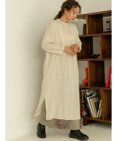 細かなピンタックデザインが目を惹くワンピースフロントに施したピンタックデザインがポイントのワンピース。ゆったりとしたシルエットに、両サイドのスリットが抜け感のある着こなしを演出します。さらっと一枚で着用するのはもちろん、レギンスやパンツと合わせたレイヤードスタイルもおすすめです。※撮影時のライティング、PCやスマートフォンの環境により写真の色味が実際の商品と異なって見える場合がございます。ご了承の上お買い求め下さいませ。※モデル着用画像は実際の色と多少異なる場合がございますのでマネキン画像をご確認ください。《 お知らせ 》▼商品のお気に入り登録お気に入りアイテムの値下げ・再入荷・在庫1点などの通知を受け取ることができます。▼ブランドのお気に入り登録新商品や再入荷、セール、クーポン配布などお得な情報を受け取ることができます。